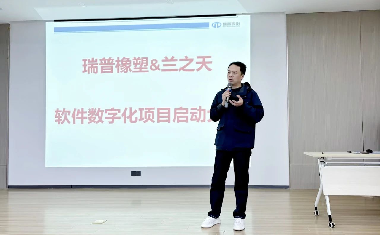 大會上,蘭之天軟件銷售總監李成豹詳細介紹了瑞普橡塑數字化轉型的整體規劃。他指出,數字化是瑞普橡塑邁向智能制造的必由之路,更是應對未來市場競爭的核心資產。此次項目以打造智能化數字工廠為核心目標,覆蓋從客戶需求到供應鏈協同的全業務鏈。通過ERP系統替換、智能制造模塊開發、數據中臺搭建等舉措,實現生產、研發、財務、質量管理的全面數字化。